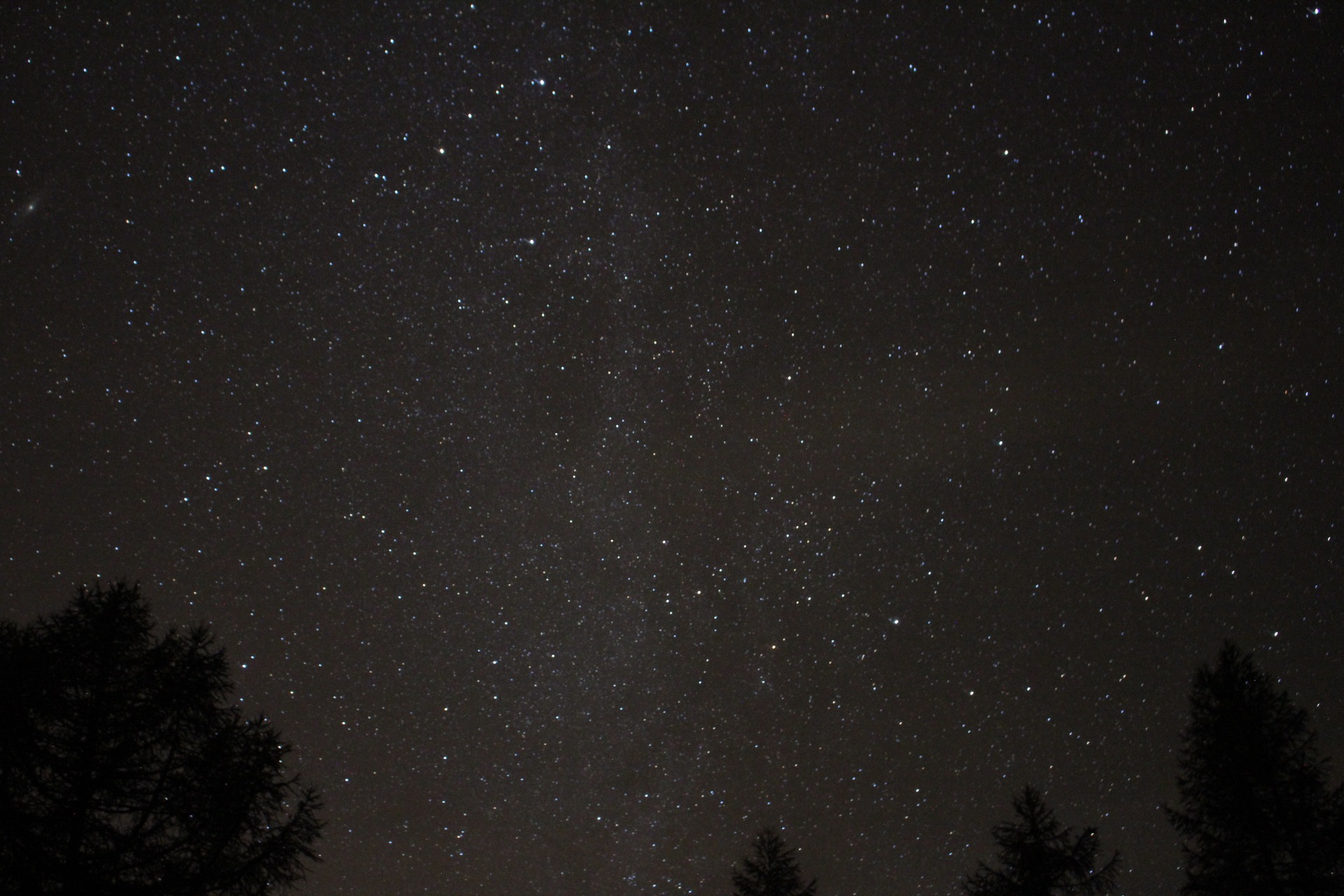 Notte in montagna distante dall'inquinamento luminoso, chiaramente distinguibili alcune delle tante costellazioni e punti luminosi come pianeti o stelle importanti